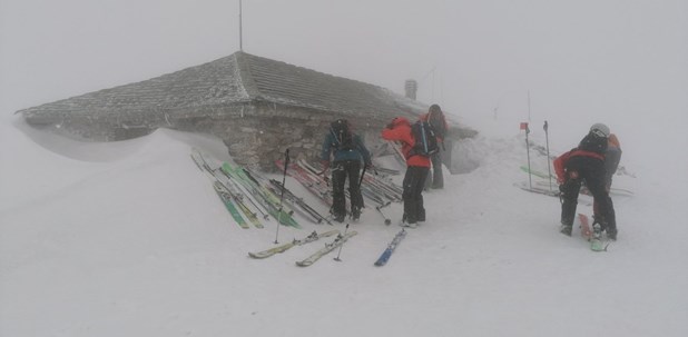 Στο εσωτερικό του έγινε μια μικρή σύσκεψη και οι έμπειροι οδηγοί βουνού ενημέρωσαν τους συμμετέχοντες ότι το επίπεδο της χιονοστιβάδας ήταν στο 3 (στο 4 η κατάσταση είναι άκρως επικίνδυνη και στο 5 δεν προχωρά κανείς). Όλοι μαζί συμφώνησαν πως έπρεπε να σταματήσουν εκεί.
