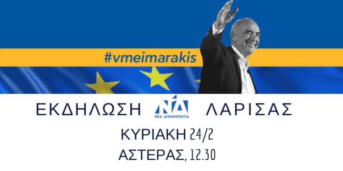 Η Νομαρχιακή Διοικούσα Επιτροπή (ΝΟ.Δ.Ε.) Ν. Λάρισας της Νέας Δημοκρατίας, προσκαλεί τα μέλη και τους φίλους του κόμματος στην ετήσια χοροεσπερίδα της, που θα πραγματοποιηθεί την Κυριακή 24 Φεβρουαρίου 2019 και ώρα 12:30 το μεσημέρι στο κέντρο εκδηλώσεων «ΑΣΤΕΡΑΣ» (5ο χλμ Λάρισας –Αμπελώνα).