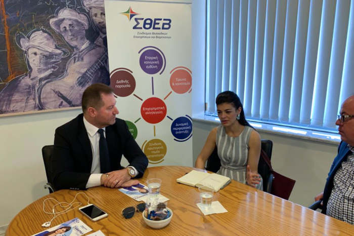 Στο πλαίσιο των επαφών της με εκπροσώπους φορέων, η δυναμική και δραστήρια δικηγόρος είχε συνάντηση με μέλη της διοίκησης του ΣΘΕΒ. Ο πρόεδρος Αχιλλέας Νταβέλης και ο αντιπρόεδρος, Χρήστος Γιακουβής αναφέρθηκαν στα προβλήματα που αντιμετωπίζει ο επιχειρηματικός κόσμος της Λάρισας, σε τοπικό και κεντρικό επίπεδο. Στη συνάντηση μετείχε και η γενική διευθύντρια του Συνδέσμου, Έλενα Καματέρη.
