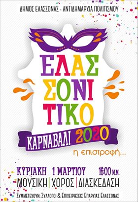 Ο Δήμος Ελασσόνας και η Αντιδημαρχία Πολιτισμού στα πλαίσια των Αποκριάτικων εκδηλώσεων σας καλούν να συμμετέχετε στις εκδηλώσεις για τις «Απόκριες 2020».