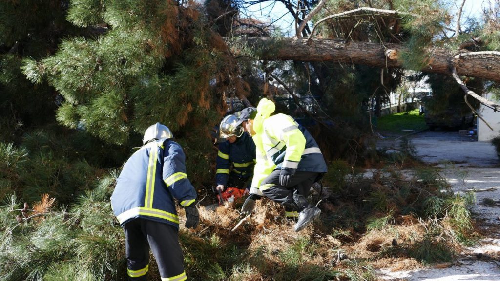 Στο σημείο έσπευσαν Πυροσβεστική και Αστυνομία, όπως και συνεργείο του Δήμου Λαρισαίων ώστε να απομακρύνει τον κορμό και τα κλαδιά.