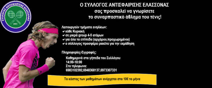 Ο Σύλλογος Αντισφαίρισης Ελασσόνας ξεκινά τμήματα τένις ενηλίκων και σας περιμένει!