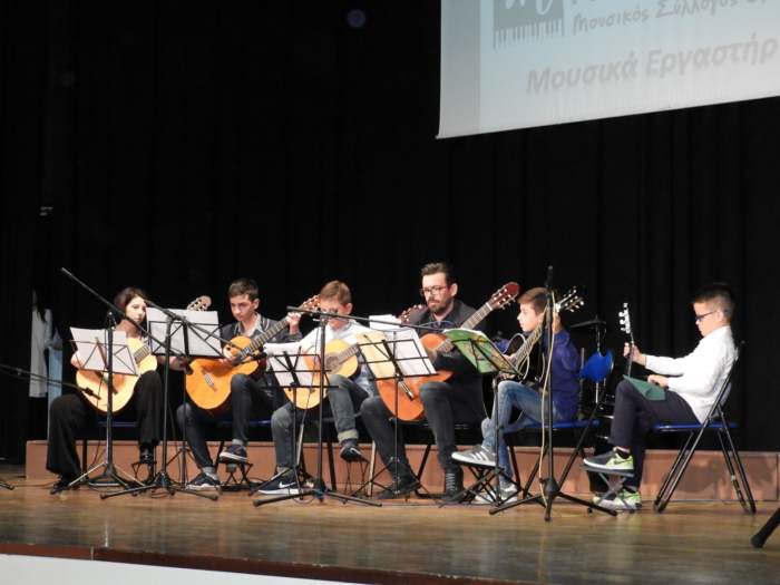 Οι μικροί και μεγάλοι μουσικοί των εργαστηρίων πιάνου, αρμονίου, ακορντεόν, κιθάρας, σαξοφώνου, κρουστών, λαούτου, παραδοσιακής μουσικής, μοντέρνου και κλασικού τραγουδιού του συλλόγου μαζί με τους καθηγητές τους παρουσίασαν δείγματα της δουλειάς τους με ευχάριστες μελωδίες του κλασικού και σύγχρονου ρεπερτορίου, ατομικά και σε μικρά μουσικά σύνολα, αποσπώντας το παρατεταμένο θερμό χειροκρότημα των παρευρισκόμενων στην κατάμεστη αίθουσα.