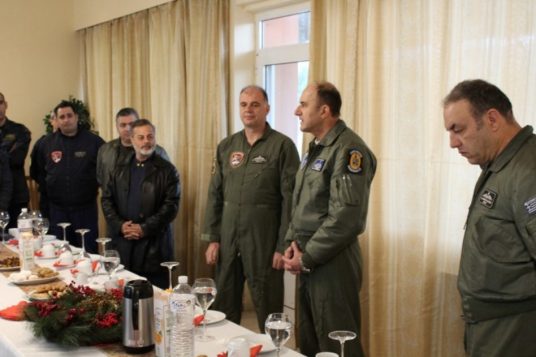 Κατά τη διάρκεια της επίσκεψης, ο Αρχηγός συνομίλησε και αντάλλαξε ευχές με το προσωπικό της Μονάδας, καθώς και με τους Ιπτάμενους και Τεχνικούς των αεροσκαφών επιφυλακής.