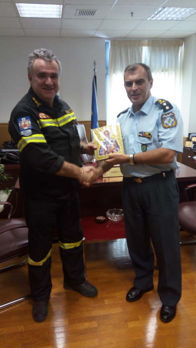 Σήμερα (03-07-2018) το πρωί πραγματοποιήθηκε από το διοικητή της Πυροσβεστικής Υπηρεσίας Λάρισας, Πύραρχο κ. Ζήση Μπρούζα, εθιμοτυπική επίσκεψη στο γραφείο του Γενικού Περιφερειακού Αστυνομικού Διευθυντή Θεσσαλίας, Υποστράτηγο Ιωάννη Τόλια.