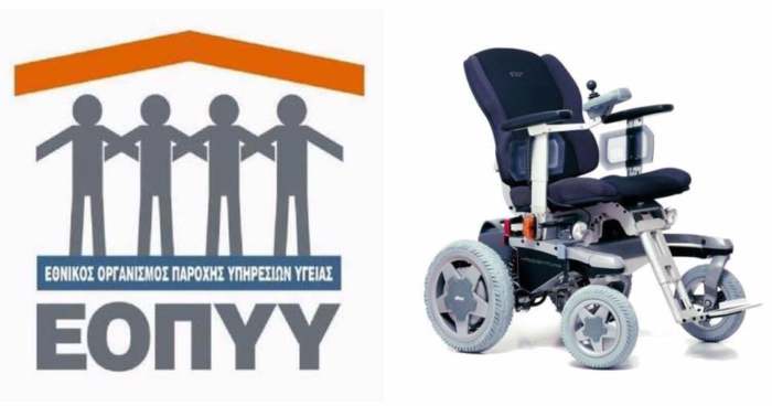Δικαιολογητικά για ηλεκτροκίνητο αμαξίδιο Για να προμηθευτείτε ηλεκτροκίνητο αμαξίδιο μέσω του ΕΟΠΥΥ χρειάζεται αρχικά γνωμάτευση (γνωμάτευση παροχών ΕΚΠΥ) από νευρολόγο, ορθοπεδικό ή φυσίατρο. Ο κωδικός γνωμάτευσης για ηλεκτροκίνητο απλό είναι 00113 και για ενισχυμένο 00114. Στα σχόλια της γνωμάτευσης να αναγράφεται ότι ο ασθενής έχει πνευματική ικανότητα και φυσιολογικές αντιδράσεις χειρισμού. Σημαντική προϋπόθεση: Ο ασφαλισμένος δεν θα πρέπει να έχει συμπληρώσει το 65ο έτος της ηλικίας του. Προσοχή η γνωμάτευση να είναι με 0% συμμετοχή (να έχετε μαζί σας απόφαση ΚΕΠΑ ή οποιαδήποτε απόφαση πιστοποιεί την αναπηρία σας). Επιπλέον χρειάζονται τα εξής: