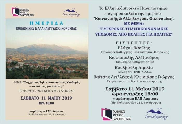 Στη “γειτονιά” της Λάρισας, στην περιοχή Σαρανταπόρου, Δήμου Ελασσόνας, πολίτες και μόνιμοι κάτοικοι της περιοχής δεν κάθονται με σταυρωμένα χέρια να κοιτάνε τα χωριά τους να ερημώνουν. Δεν περιμένουν τον “από μηχανής Θεό” να δημιουργήσει ευκαιρίες ανάπτυξης. Πολεμάνε τη γεωγραφική και ψηφιακή τους απομόνωση οικοδομώντας τη δική τους τηλεπικοινωνιακή υποδομή, το ασύρματο κοινοτικό δίκτυο Sarantaporo.gr, που παρέχει ανοιχτή πρόσβαση στο διαδίκτυο για κατοίκους και επισκέπτες 10 χωριών της περιοχής από το 2010. Παράλληλα πρόκειται για ένα ανθρώπινο δίκτυο μεταξύ των μόνιμων κατοίκων των χωριών, οι οποίοι συναντιούνται, μοιράζονται τη γνώση και αλληλοστηρίζονται.