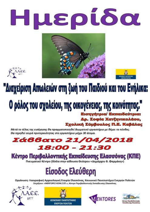 Η Λαογραφική Αρχαιολογική Εταιρία Ελασσόνας με τη συνεργασία του Κοινωνικού Πανεπιστημίου Ενεργών Πολιτών και τη στήριξη της Κοιν.Σ.Επ. «ΜΕΝΤΟΡΕΣ» και του Κέντρου Περιβαλλοντικής Εκπαίδευσης Ελασσόνας,