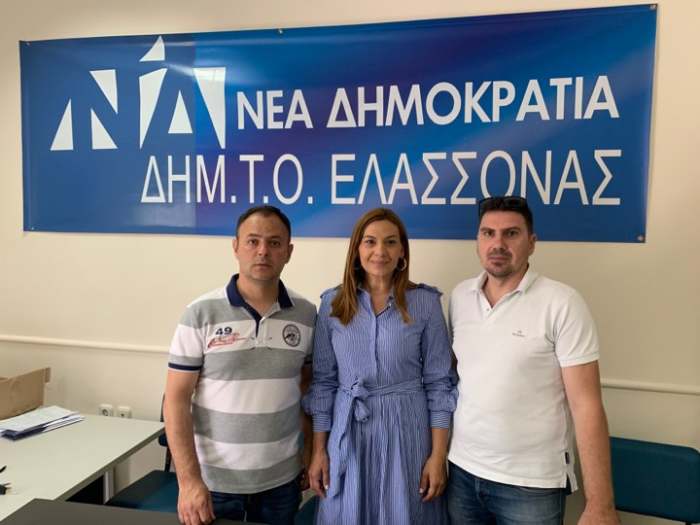 Τέλος επισκέφτηκε το γραφείο της ΔΗΜ.ΤΟ ΝΔ Ελασσόνας, όπου ο πρόεδρος κ. Θωμάς Κίτσης και ο γραμματέας κ. Δημήτρης Τιβικέλης την ενημέρωσαν για την ετοιμότητα της τοπικής οργάνωσης για τις εθνικές εκλογές.