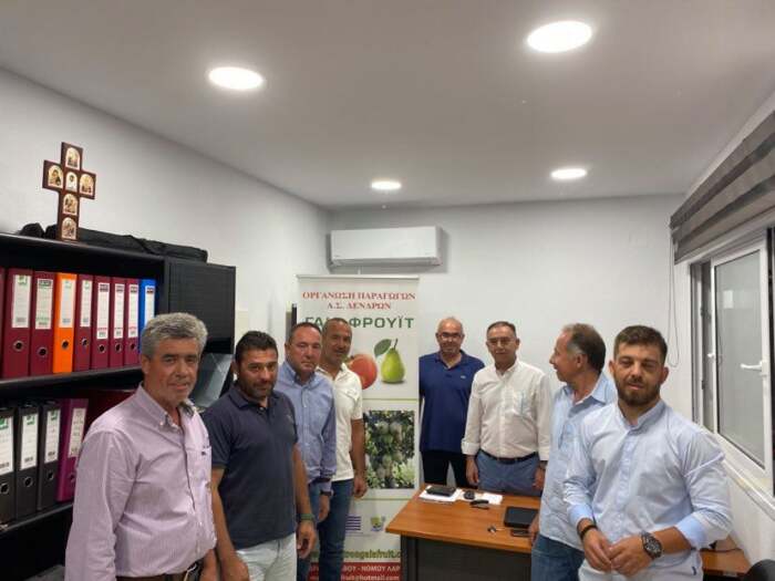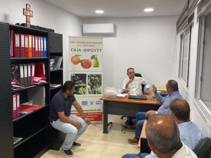 Την προοπτική στήριξης της παραγωγής αχλαδιού και των άλλων φρούτων (ροδάκινα, βερίκοκα, νεκταρίνια) συζήτησε με τη διοίκηση και παραγωγούς της Οργάνωσης Παραγωγών Α.Σ. Δένδρων Τυρνάβου ΓΑΙΑ ΦΡΟΥΙΤ, ο αν. Γραμματέας της ΚΟ της ΝΔ, βουλευτής Ν. Λάρισας κ. Χρήστος Κέλλας.