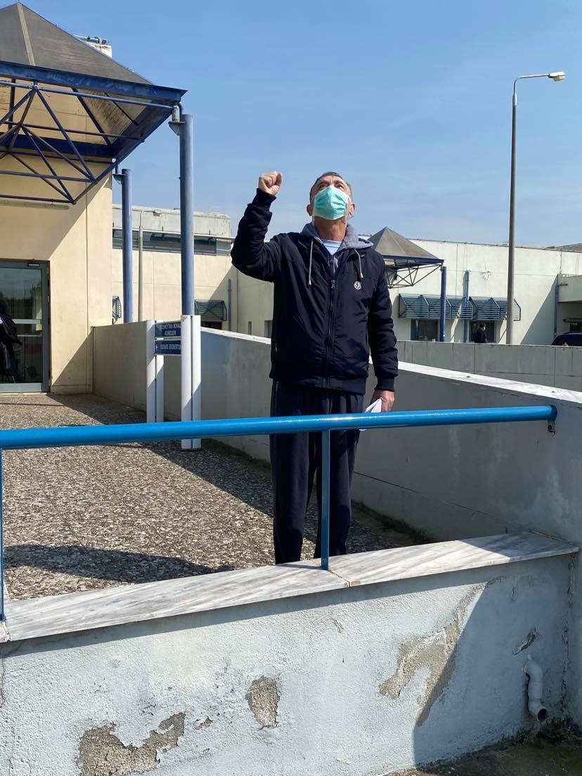 «Με τη βοήθεια του Θεού είμαι και πάλι κοντά σας. Έδωσα μια σκληρή μάχη και θέλω να ευχαριστήσω τους γιατρούς και το νοσηλευτικό προσωπικό στο νοσοκομείο Λάρισας αλλά και σε όλα τα νοσοκομεία της Ελλάδας που δίνουν μια τιτάνια μάχη για να κρατήσουν την χώρα όρθια.