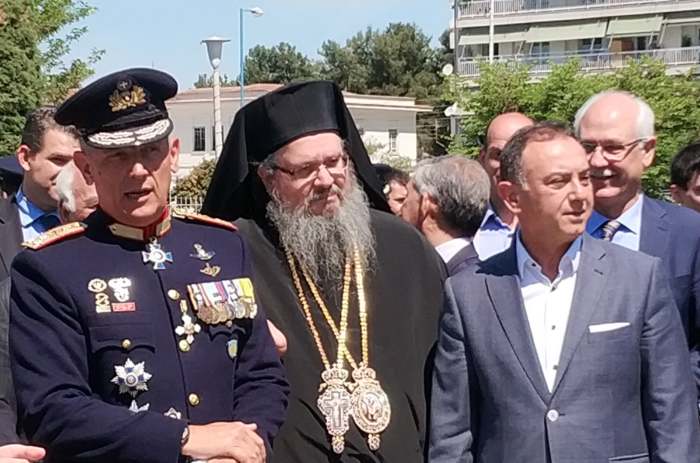 Θέλω να ευχαριστήσω τον Στρατηγό Φλώρο, τα στελέχη της 1ης Στρατιάς και τους στρατιωτικούς μας, σε όλη την επικράτεια, για τις υπηρεσίες, που προσφέρουν στην Πατρίδα μας καθώς και να δώσω τα θερμά μου συγχαρητήρια σε όλους τους στρατιώτες μας που εργάστηκαν, για να προετοιμάσουν υποδειγματικά, όπως πάντα, τη σημερινή γιορτή. Εύχομαι ολόψυχα σε όλους και όλους χρόνια πολλά και ο Άγιος Γεώργιος να σας συντροφεύει πάντοτε! Χριστός Ανέστη!».