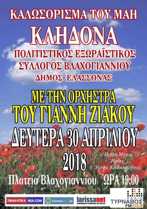 Θεσμός έχουν γίνει πλέον για τον Πολιτιστικό Εξωραϊστικό Σύλλογο Βλαχογιαννίου οι εκδηλώσεις για το καλωσόρισμα του Μάη με τον σύλλογο να καλεί όλους για την αναβίωση των εθίμων «ΤΑ ΚΛΗΔΟΝΑ».
