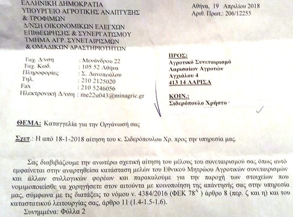 Τέλος οι τρεις καταγγέλλοντες επισημαίνουν ότι παρά τις αποφάσεις για ανά μήνα συνεδριάσεις του δ.σ. του συνεταιρισμού αυτές δεν τηρούνται, ενώ και το αίτημά τους να τους δοθούν τα οικονομικά στοιχεία του 2017 δεν έχει ικανοποιηθεί. ενώ υποστηρίζουν ότι στο χώρο των γραφείων του συνεταιρισμού ουσιαστικά λειτουργούν δύο εταιρείες συγκέντρωση δηλώσεων ΟΣΔΕ, κάτι που απαγορεύεται από τον ΟΠΕΚΕΠΕ και αποδεικνύει κατά την άποψή τους τη στενή σχέση μεταξύ ιδιώτη και της πλειοψηφίας της διοίκησης του συνεταιρισμού.