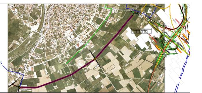 - Η δημιουργία ισόπεδου τρισκελούς κυκλικού κόμβου ενός δακτυλίου κυκλοφορίας διαμέτρου D=36.50m, στην διασταύρωση της Εθνικής Οδού Λάρισας – Ελασσόνας παρά την Χ.Θ. 0+0,00.