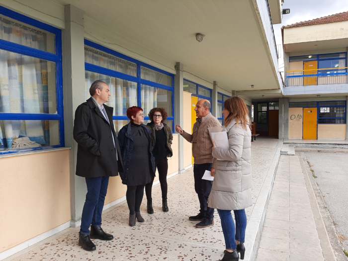Παρόντες στη αυτοψία η προϊσταμένη της διεύθυνσης Τεχνικής Υπηρεσίας κ. Χρ. Ζαρίφη, η μηχανικός της υπηρεσίας κ. Αγγ. Αγγελή και η πρόεδρος της  Α/βάθμιας Σχολικής Επιτροπής του Δήμου κ. Εύη Θεοδωράκη.