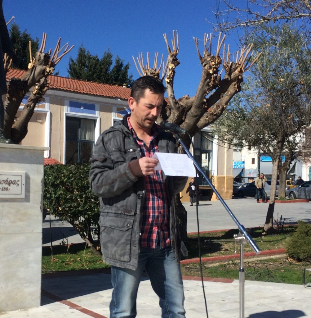 Την κεντρική ομιλία έκανε ο Γιάννης Παπαδημητρίου, Πρόεδρος του Αγροτικού Συλλόγου Σαρανταπόρου και μέλος του Δ.Σ. της Ενωτικής Ομοσπονδίας Αγροτικών Συλλόγων Ν. Λάρισας (ΕΟΑΝΣΛ), ενώ το ψήφισμα με τα αιτήματα ανέγνωσε ο Γιώργος Αποστόλου, Πρόεδρος του Αγροτοκτηνοτροφικού Συλλόγου Τσαριτσάνης.