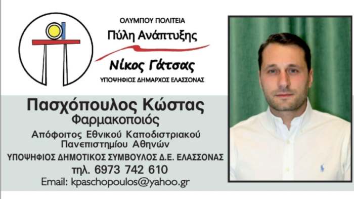 Μέλημά μας η αναβάθμιση και η ανάδειξη του τόπου μας. Ο Δήμος Ελασσόνας να αλλάξει, να εξελιχθεί σε έναν σύγχρονο δήμο με υπηρεσίες υψηλής ποιότητας προς τους δημότες του που θα βελτιώσουν την καθημερινότητά μας και θα δημιουργήσουν τις απαραίτητες συνθήκες διαβίωσης οι οποίες θα προσελκύσουν αύριο την επιστροφή ακόμα περισσότερων νέων στον τόπο μας.