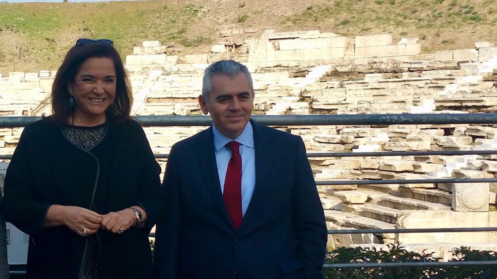 Νωρίτερα, η Ντόρα Μπακογιάννη είχε σειρά επαφών με φορείς, ενώ επισκέφθηκε την Περιφέρεια και το αρχαίο θέατρο της Λάρισας.