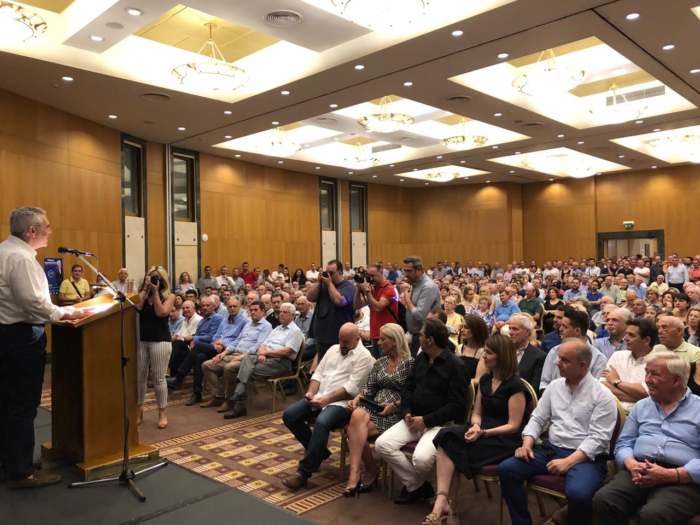 «Για 4,5 χρόνια οι παραγωγικές τάξεις κυνηγήθηκαν απηνώς, φόροι επί των φόρων. Και όχι τυχαία, όχι εκτάκτως. Με ιδεοληπτική εμμονή, επεδίωξαν να εξοντώσουν την μεσαία τάξη και δεν το έκρυψαν. Εμείς δεν θέλουμε τέτοιο μίζερο μέλλον. Θέλουμε ανθρώπους που μπορούν να κυνηγήσουν τα όνειρά τους, που μπορούν να εφαρμόσουν τα σχέδιά τους. Και κυρίως θέλουμε τους νέους μας να μείνουν στο τόπο τους. Και να γυρίσουν και αυτοί που έφυγαν από εδώ, τα τελευταία χρόνια και είναι εκατοντάδες χιλιάδες. Κι αυτό θα γίνει μόνον αν ανοίξουν δουλειές. Και δουλειές θα ανοίξουν αν μειωθούν οι φόροι, και έλθουν επενδύσεις και δημιουργηθεί ευοίωνο επιχειρηματικό κλίμα».