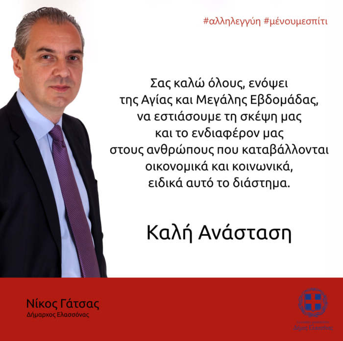 Θέλω να τους διαβεβαιώσω ότι ο Δήμος Ελασσόνας και όλοι εμείς προσωπικά θα είμαστε δίπλα τους. Θα φροντίσουμε τόσο κατά τη διάρκεια όσο και μετά από αυτή την περιπέτεια, να απαλύνουμε τις συνέπειές της.