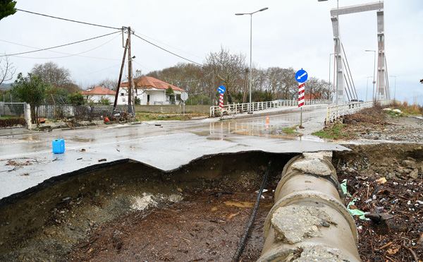 2) Στον επαρχιακό δρόμο Βελίκας – Παλιουργιάς τμήμα του δρόμου κατέρρευσε λόγω ανθρώπινης παρέμβασης καθώς η ποσότητα νερού που συσσωρεύετε δεν διοχετεύεται σωστά.