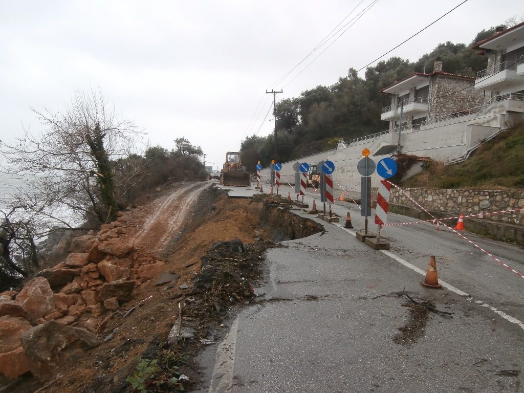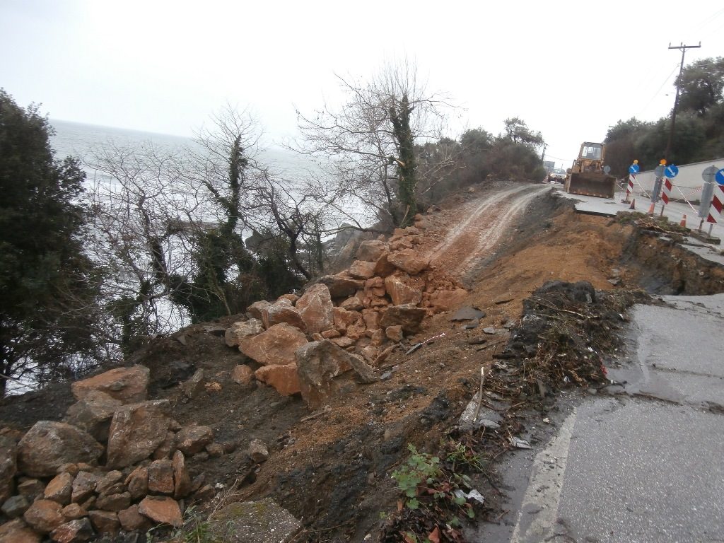 1) Στην περιοχή της παραλίας αποκαλούμενη και ως «Νησί», πλησίον της γέφυρας, υποχώρησε το οδόστρωμα σε μήκος περίπου 50 μέτρων και αποκαλύφθηκε αγωγός όμβριων υδάτων ο οποίος δεν υπέστη ζημιές και έχει τοποθετηθεί προ εικοσαετίας. Η ζημιά αποκαταστάθηκε άμεσα και πριν το τριήμερο της Καθ. Δευτέρας όπως φαίνεται και στις φωτογραφίες, ενώ οι υπόλοιπες υποδομές (γέφυρα, δρόμος, κ.α.) δεν υπέστησαν ζημιές, παρά το γεγονός ότι για πρώτη φορά το ύψος βροχής ήταν τόσο μεγάλο που το νερό υπερπήδησε τα αναχώματα.