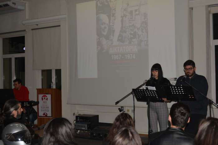 Την κεντρική ομιλία έκανε ο Θοδωρής Κωτσαντής, μέλος του ΚΣ και Γραμματέας του ΣΠ Θεσσαλίας της ΚΝΕ.
