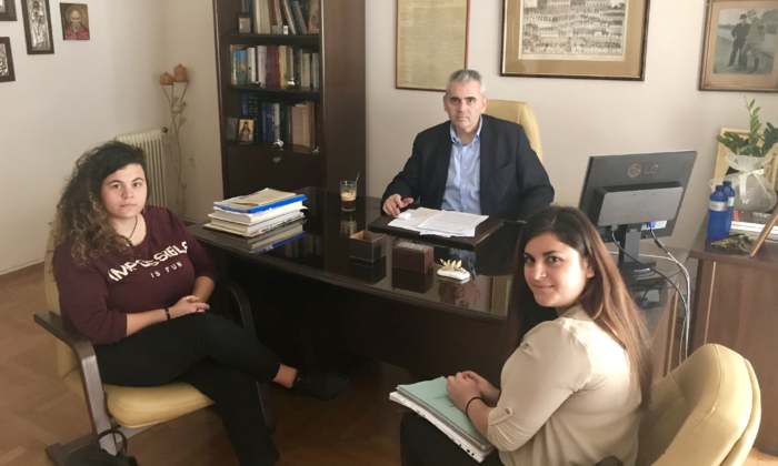 Φωτ. Ο Μάξιμος Χαρακόπουλος πριν την κατάθεση της ερώτησης ενημερώθηκε από τις φοιτήτριες του τμήματος Ιατρικών Εργαστηρίων Αλεξία Ματζίρη και Μαρία Στυλιανού.
