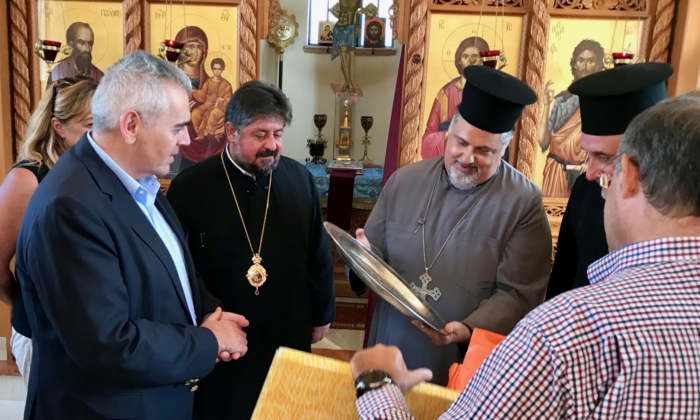 Τέλος, πραγματοποίησαν προσκυνηματική επίσκεψη στον Ορθόδοξο Ιερό Ναό του Αποστόλου Παύλου στην πόλη Reggio, -την πρώτη Ορθόδοξη εκκλησία που χτίστηκε μετά από χίλια χρόνια, όπως είπε ο εφημέριος π. Ηλίας Ιαρίας, και προσέφεραν στην ενορία έναν αντίγραφο δίσκου από τη Μικρά Ασία.