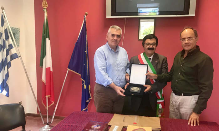 Ακολούθως είχαν συνάντηση με την πρόεδρο κ. Μαρία Χαπαλόγλου, τον αντιπρόεδρο κ. Κωνσταντίνο Τέλιο και μέλη της ελληνικής κοινότητας Ρηγίου, που ζήτησαν βιβλία για την εκμάθηση της νέας ελληνικής. Άκρως ενδιαφέρουσα ήταν η ενημέρωση από τον καταξιωμένο ιστορικό κ. Domenico Minuto -εκ των ιδρυτών του κινήματος για την ανάδειξη της ελληνικότητας της Καλαβρίας. Οι Έλληνες βουλευτές ευχαρίστησαν τον υπερήλικα καθηγητή για το έργο του και σε ένδειξη αναγνώρισης τού προσέφεραν μια βυζαντινή εικόνα της Αναστάσεως.