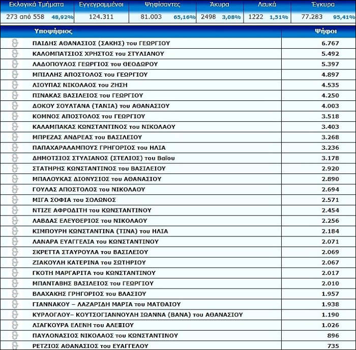 Οι σταυροί Λαρισαίων υποψηφίων της παράταξης του Κώστα Αγοραστού (48,92%)
