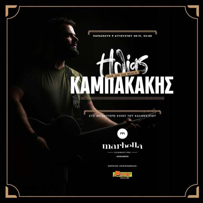 Ο Ηλίας Καμπακάκης την Παρασκευή 9 Αυγούστου στις 22.00 το βράδυ, στο event του καλοκαιριού, στο Marbella Summertime στον Αγιόκαμπο!