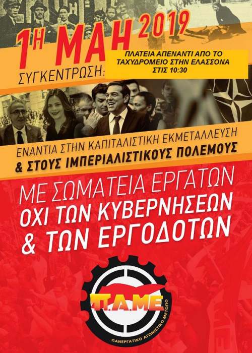 Ο εορτασμός της φετινής Πρωτομαγιάς συμπίπτει με την προεκλογική περίοδο των Δημοτικών, Περιφερειακών εκλογών και των Ευρωεκλογών. Βλέπουμε την προσπάθεια της κυβέρνησης, των κομμάτων του κεφαλαίου, να ξαναστήσουν τις παγίδες τους για να εγκλωβίσουν τη λαϊκή δυσαρέσκεια στα μέτρα που τους βολεύει από τη βαρβαρότητα της εκμετάλλευσης που στηρίζουν. Θέλουν να ενισχύσουν τον αντεργατικό τους μηχανισμό ώστε την επόμενη των εκλογών να συνεχίσουν να επιτίθενται στη ζωή μας.