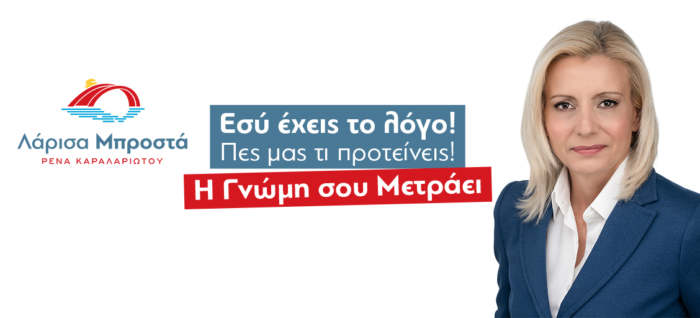 «Η Λάρισα σε κάθε γειτονιά της, σε κάθε περιφερειακό της διαμέρισμα, εξακολουθεί να αντιμετωπίζει προβλήματα. Εξακολουθεί να χρειάζεται δράσεις και λύσεις που θα κάνουν την πόλη μας πιο νοικοκυρεμένη, πιο καθαρή, πιο ανθρώπινη, πιο ασφαλή και πιο σύγχρονη. Θέλουμε να καταγράψουμε τα προβλήματα και να ακούσουμε τις σκέψεις και τις προτάσεις όλων των Λαρισαίων, για να τις συμπεριλάβουμε στο πρόγραμμά μας, το οποίο ετοιμάζουμε, για την επόμενη μέρα της Λάρισας. Για αυτόν τον λόγο, η γνώμη των πολιτών, όλων των πολιτών, έχει ιδιαίτερη βαρύτητα –και συμβάλλει καθοριστικά στην προσπάθεια μας. Εσείς έχετε το λόγο! Κι εμείς ακούμε», τονίζει η υποψήφια δήμαρχος, Ρένα Καραλαριώτου.