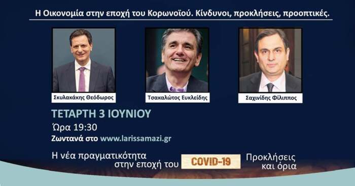 Ιδιαίτερο ενδιαφέρον προκαλεί η διαδικτυακή συζήτηση που διοργανώνει ο Δήμος Λαρισαίων, την ερχόμενη Τετάρτη 3 Ιουνίου, στο πλαίσιο της Πόλης που Μαθαίνει και του Πανεπιστημίου Πολιτών με θέμα «Η Οικονομία στην εποχή του Κορωνοιού. Κίνδυνοι προκλήσεις προοπτικές». Η συζήτηση θα ξεκινήσει στις 7.30 μ.μ. και θα μεταδοθεί από την ψηφιακή πύλη του Δήμου Λαρισαίων www.larissamazi.gr