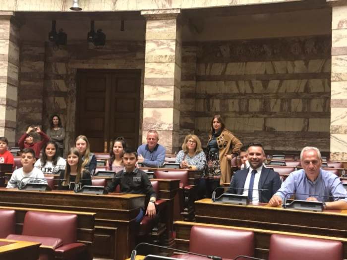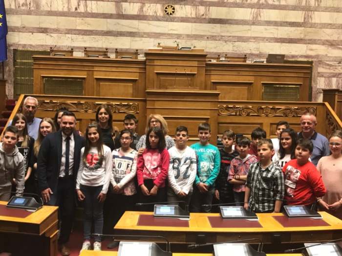 Στα βουλευτικά έδρανα ο Κατσιαντώνης με μαθητές και γονείς από το Δαμάσι