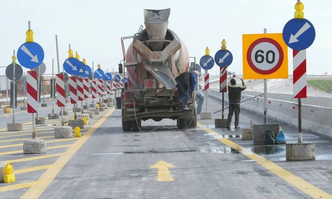 β) σε εργασίες κατασκευής συνοδών έργων (χωματουργικά, ασφαλτικά, σήμανση και ασφάλεια.
