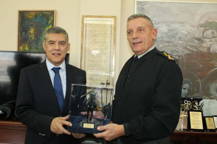 Στο πλαίσιο της επίσκεψης του στην Περιφέρεια Θεσσαλίας ο διοικητής της 1ης Στρατιάς πρόσφερε στον κ. Αγοραστό πρωτότυπο, αριθμημένο αντίγραφο του αγάλματος του Θεσσαλού στρατηγού Νικολάου Πλαστήρα, το όνομα του οποίου φέρει και το στρατόπεδο-έδρα της Στρατιάς στη Λάρισα.