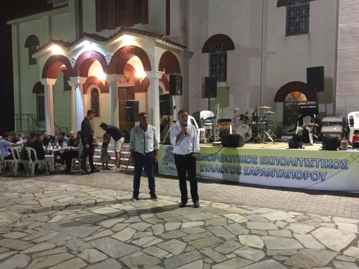 «Είμαι ιδιαίτερα χαρούμενος, που βρίσκομαι εδώ, στο φετινό αντάμωμα των Σαρανταποριτών, ανάμεσα σε καλούς φίλους. Χαίρομαι, δε, διπλά, διότι είναι μαζί μας τόσα νέα παιδιά, που τιμούν τον τόπο και τις παραδόσεις μας».