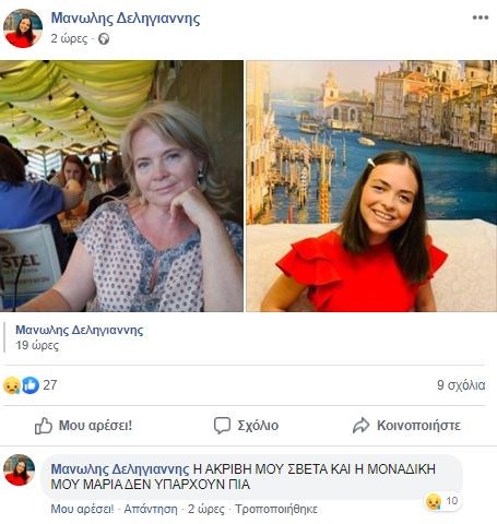 Με ανάρτησή του στην προσωπική του σελίδα στο Facebook γράφει: «Η ακριβή μου Σβέτα και η μοναδική μου Μαρία δεν υπάρχουν πια».