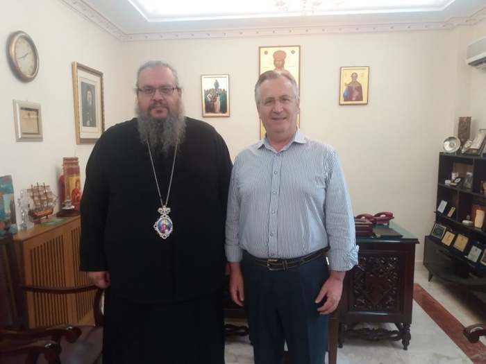 Ο Σεβασμιότατος τον υποδέχθηκε σε θερμό κλίμα και ακολούθησε εγκάρδια συζήτηση που περιστράφηκε κυρίως σε εκκλησιαστικά ζητήματα.  Ο Ποιμενάρχης ευχήθηκε καλή επιτυχία και έδωσε την ευλογία του στον υποψήφιο βουλευτή.