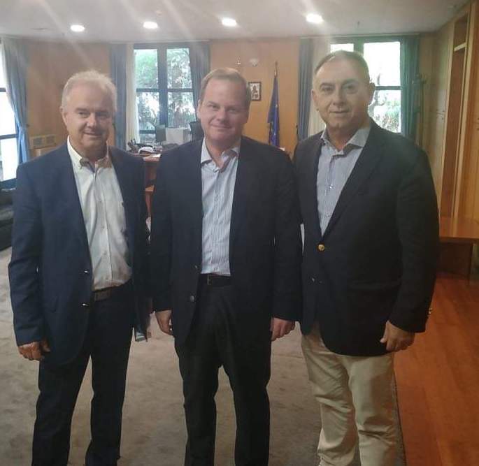 Δύο ζητήματα εξέχουσας σημασίας για τον Δήμο Τεμπών, έθεσαν στον Υπουργό Υποδομών και Μεταφορών κ. Κώστα Καραμανλή, ο Δήμαρχος Τεμπών κ. Γιώργος Μανώλης και ο βουλευτής Λάρισας της Ν.Δ κ. Χρήστος Κέλλας, που τον επισκέφθηκαν στο γραφείο του στο υπουργείο.