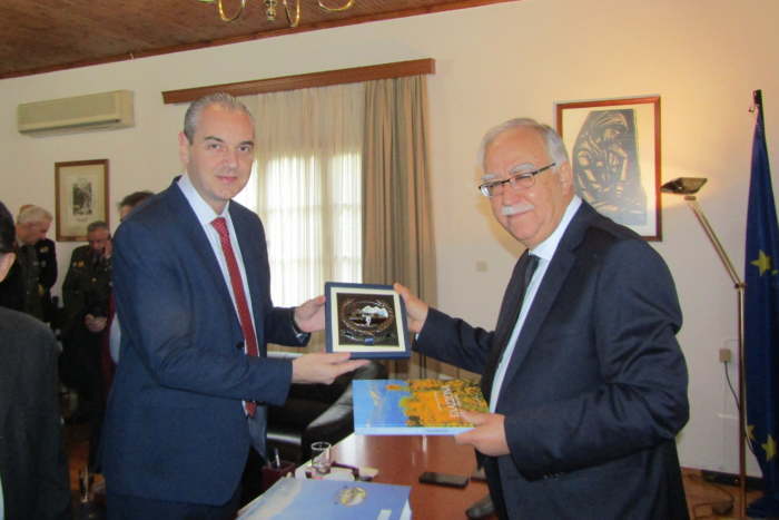 Στον δήμαρχο Καλαβρύτων ο κ. Γάτσας προσέφερε το έμβλημα του Δήμου Ελασσόνας και ένα λεύκωμα για την απελευθέρωση.