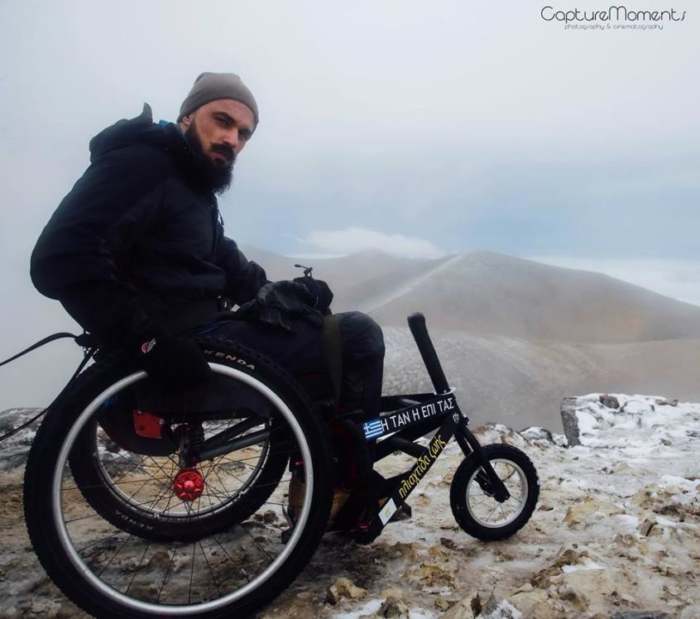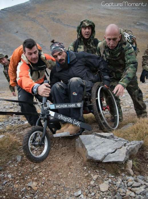 Στην κορυφή του Ολύμπου στην Ελλάδα κατάφερε να ανεβεί ο παραπληγικός Γιώργος Τίρρης, ο οποίος μετά από ατύχημα καθηλώθηκε σε αναπηρικό καροτσάκι».