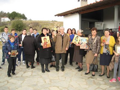 Μετά λοιπόν τη δημοπρασία του Σταυρού και των εικόνων και προπορευομένου του Σταυρού η λιτανεία εξέρχεται του ναού λέγοντας ρυθμικά και συνεχώς το: “Κύριε ελέησον” και αφού κάνουν με ταχύ βηματισμό τρεις φορές τον κύκλο του κεντρικού ναού του Αγίου Δημητρίου κατόπιν με πιο γρήγορο βηματισμό, σχεδόν τρέχοντας, η πομπή κατευθύνεται στα κοντινά ξωκλήσια του χωριού, τον Αι Γιάννη, τον Αι Κωνσταντίνο, τον Αι Παντελεήμονα, την Αι Τριάδα, τον Αι Λιά και τέλος τον Άι Θανάση, για να κατηφορίσουν στην κεντρική εκκλησία και πάλι στον πολιούχο Άγιο Δημήτριο, όπου κλήρος και λαός περιμένουν τον Σταυρό με τον οποίο θα τελέσουν τον Μεγάλο Αγιασμό των υδάτων εξωτερικά του ναού στο “χαγιάτι”, που λέγαν οι παππούδες μας, αν ο καιρός το επιτρέπει ή διαφορετικά μέσα στο ναό. Δύο ώρες περίπου διαρκεί η διαδρομή αυτή που μετριέται συνολικά σε κάποια χιλιόμετρα. Οι καμπάνες ηχούν χαρμόσυνα με την έλευση του Σταυρού και των εικόνων και “άρχεται ο Μέγας Αγιασμός…” σε κολυμβηθράκι, όπου ήδη έχει ετοιμασθεί γι’ αυτό το μεγάλο γεγονός.