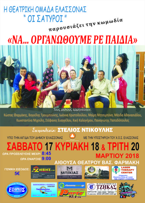 Την υπέροχη φαρσοκωμωδία, του R. HOVDON, «Να… οργανωθούμε ρε παιδιά», σε διασκευή του Στέλιου Ντικούλη, ανεβάζει η θεατρική ομάδα Ελασσόνας «Οι Σάτυροι».