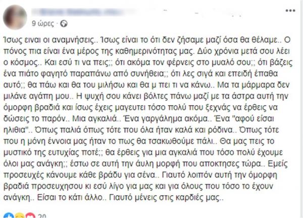 Στην τελευταία της ανάρτηση μάλιστα στο facebook πριν το μοιραίο τροχαίο τα ξημερώματα, η Ελένη είχε γράψει για το χαμό του αγαπημένου της αδελφού που δεν μπορούσε να ξεχάσει.