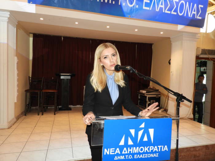 Ευχαριστώ προσωπικά ως πρόεδρος της ΔΗΜΤΟ Ελασσόνας την κα Αραμπατζή για την τιμή που μας κάνει να παραβρίσκεται εδώ στην όμορφη Ελασσόνα, την ορεινή μεν αλλά την τόσο παραγωγική για το νομό, τη Θεσσαλία και τη χώρα.