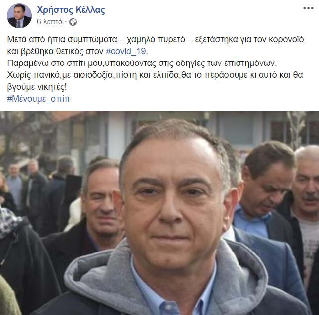 Το πρώτο επίσημο κρούσμα κορωνοϊού στη Λάρισα είναι ο βουλευτής της ΝΔ Χρήστος Κέλλας.